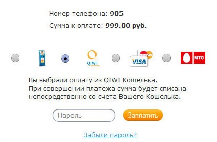 Важно: Для оплаты из QIWI Кошелька необходимо, чтобы в нем было достаточно средств для оплаты выставленного счета. QIWI Кошелек легко пополнить в терминалах QIWI и терминалах партнеров, в салонах сотовой связи, в супермаркетах, в банкоматах и через интернет-банк. Посмотреть все способы пополнения.